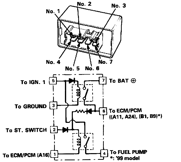 - Honda OBD1/OBD2 Main Relay Pinout (1996-2001)